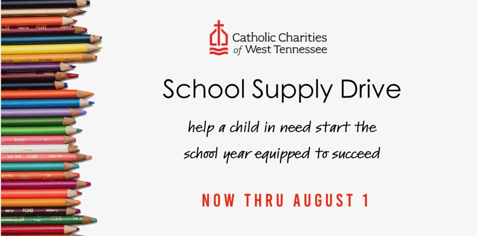 Catholic Charities of West Tennessee Virtual School Supply Drive Due to COVID-19, the CCWTN School Supply Drive is going virtual! Whether classes be online or in-person, these kids will need supplies! All materials will ship directly to CCWTN and be packed into backpacks and safely distributed to students. Please help us prepare students to start …