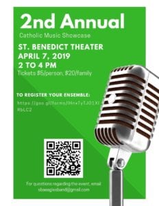 2nd Annual Catholic School Music Showcase – Sun, Apr. 7, 2-4 pm, St. Benedict Theatre, featuring student bands from Memphis area Catholic elementary and high schools. Gen. Adm. tickets $5/person, $20/family