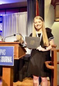 St. Benedict at Auburndale High School senior Alexa Pangonas has been honored, with 26 other young women from Memphis-area high schools, as one of the Memphis Business Journal’s inaugural “Girls Who Mean Business.” This initiative by MBJ recognizes these young women for academics, service and extracurricular accomplishments and helps nurture their career aspirations, equip them with a mentor who is an empowered Memphis businesswoman and invest in their future as leaders. Alexa, nominated by SBA, met with her mentor and then received her formal recognition at the luncheon held March 26.