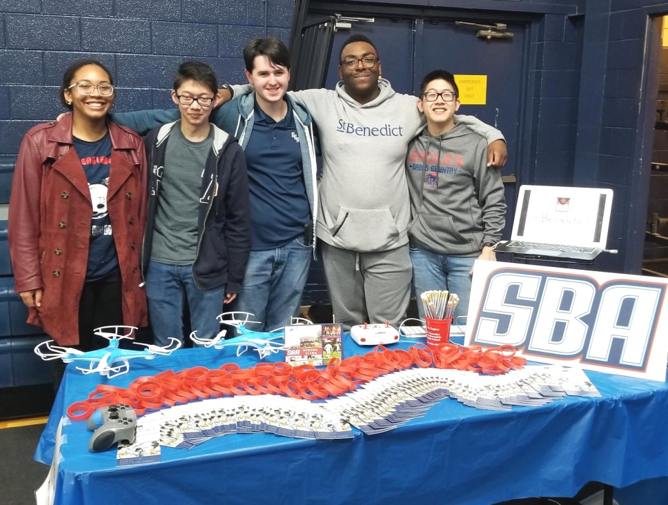 The SBA STEM/ROBOTICS TEAM wowed the St. Ann School families at their recent STREAM (Science, Technology Religion, Arts, Math) DAY with the robots and drones. Proud of sophomore Briana Duhart, junior Jeffrey Li and seniors Luke Tolbert, Allen Jimmerson, Matthew Li!