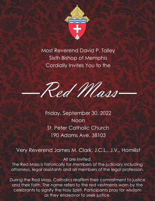 All are invited to our Red Mass, Friday, Sept. 30, Noon, at our beautiful and historic St. Peter Catholic Church. Bishop David P. Talley will be the Celebrant and Fr. James M. Clark, J.C.L., J.V., will be the Homilist. The Red Mass is celebrated annually for all in the Legal profession, which marks the opening …
