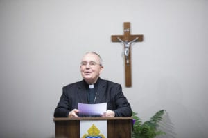 Following the Vatican’s announcement of His Holiness Pope Francis’ appointment of the Most Reverend David P. Talley as the sixth bishop of the Catholic Diocese of Memphis, the Most Reverend Joseph E. Kurtz, D.D., archbishop of the Archdiocese of Louisville and apostolic administrator for the Catholic Diocese of Memphis, introduced Bishop Talley as bishop-elect for the diocese to the clergy, faithful and public at a press conference at the Catholic Center on Tuesday, March 5.