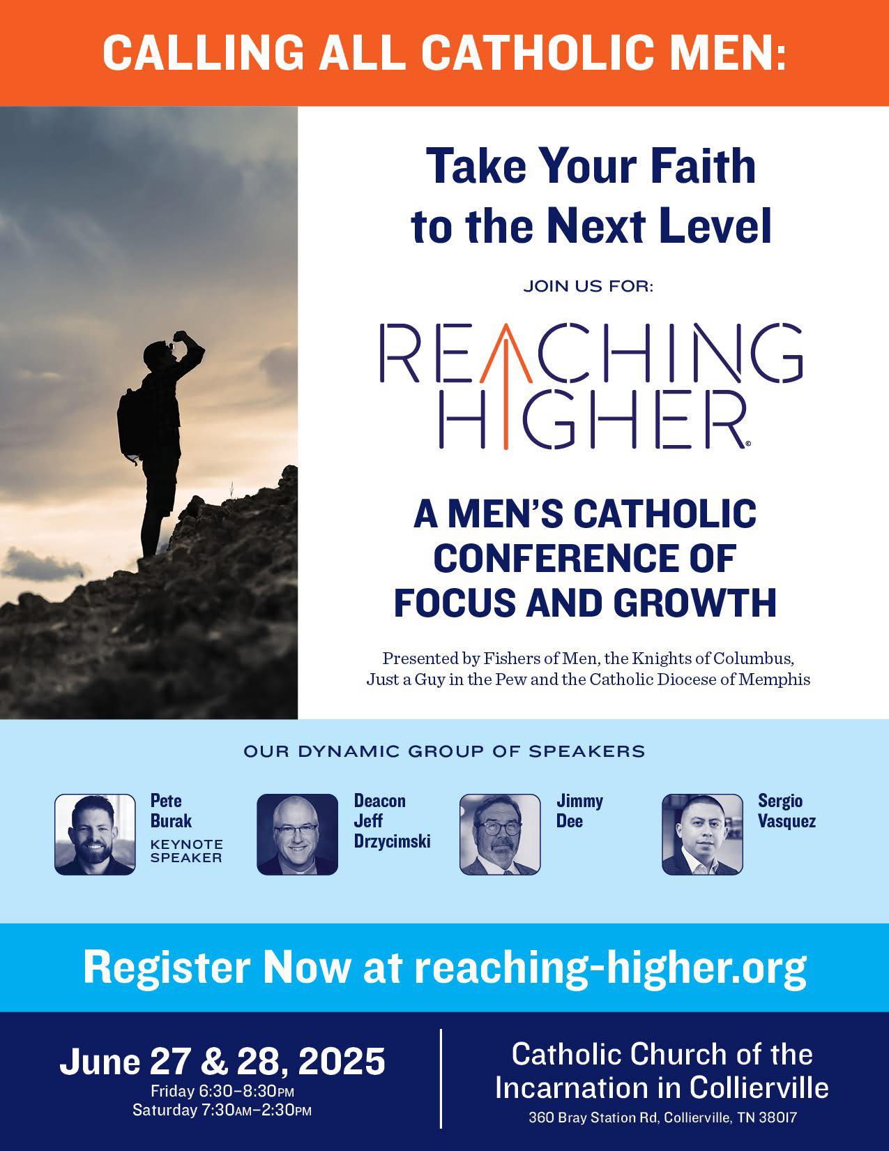 The “Reaching Higher: Our Journey in Faith” Men’s Catholic Conference starts this Friday, June 27, 6pm-9pm, and continues this Saturday, June 28, 7:30am-3pm, at our beautiful Catholic Church of the Incarnation in Collierville. Register online by clicking on this link: https://www.reaching-higher.org. The registration fee is $40, which includes three meals. Sons accompanied by their Father can …