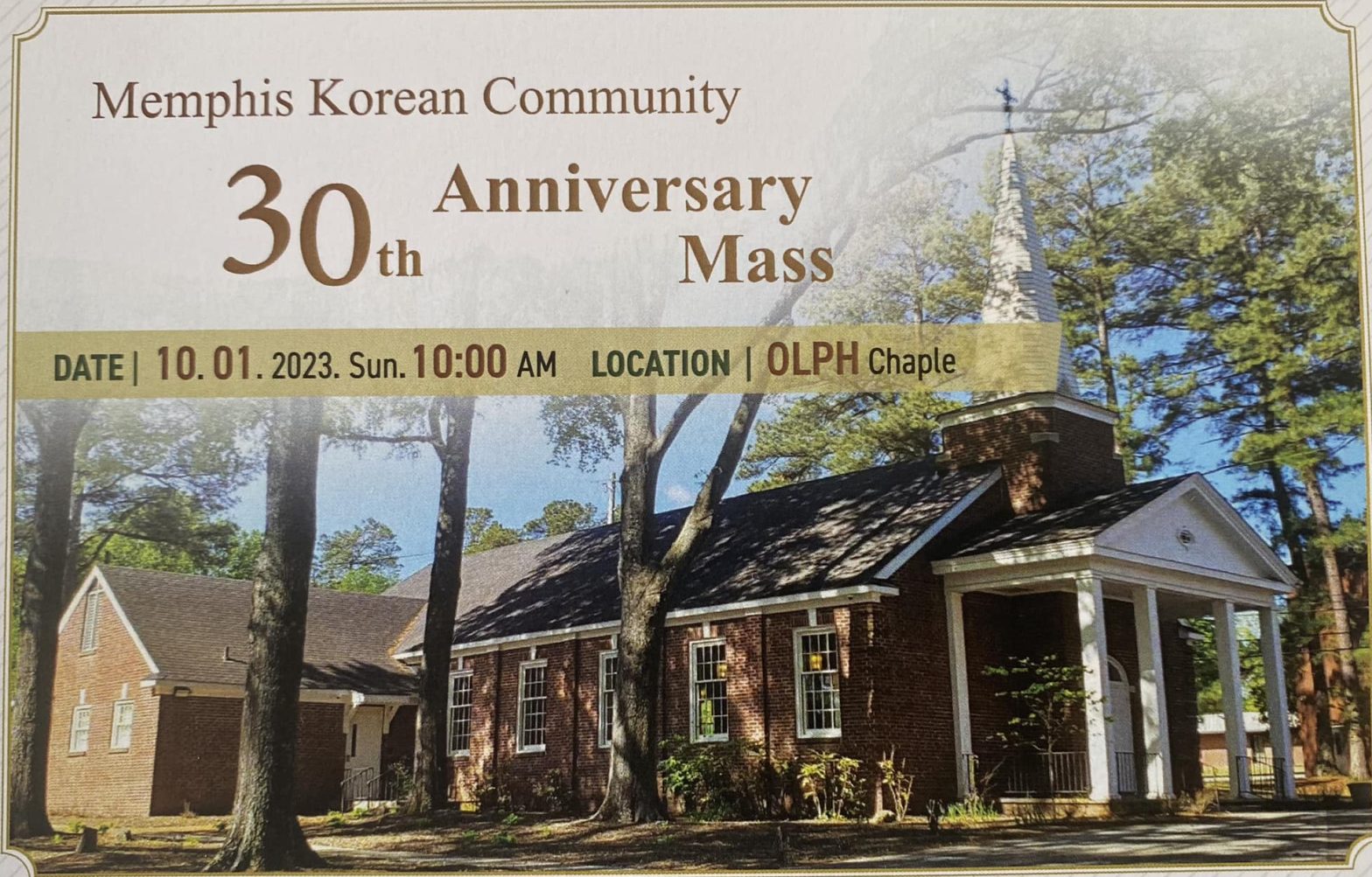 All are Invited to attend the 30th Anniversary Mass of our wonderful Korean Catholic Community in Memphis on Sunday, Oct. 1, 10 am, at our beautiful Our Lady of Perpetual Help Catholic Chapel, 8151 Poplar Ave., Germantown. Bishop David P. Talley will be the Celebrant with Father Bernard Hyo Kim, Memphis Korean Ministry, as the …