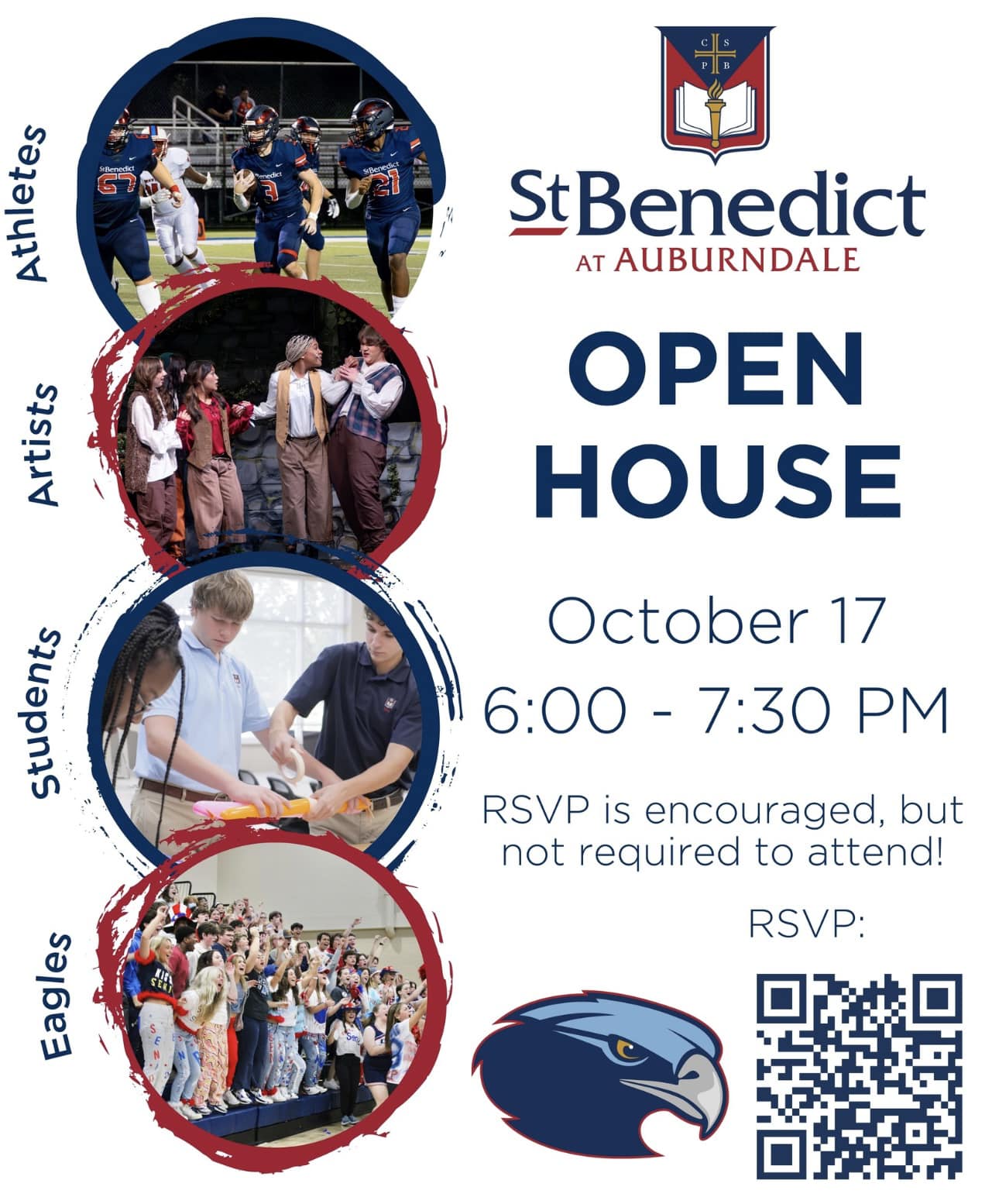 All are welcome to the Open House at our outstanding St. Benedict at Auburndale Catholic High School on Thursday evening, October 17, 6:00pm-7:30 pm. Also, please view and share the following video from Bishop David P. Talley about the Open House: https://vimeo.com/1013682092. RSVP is encouraged, but not required at: https://sbaeagles.org/admissions.