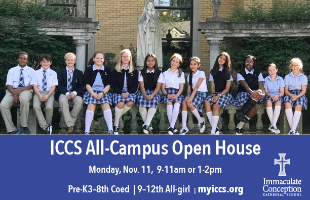 ICCS All-Campus Open House Monday Nov, 11 9-11am or 1-2 pm Pre-K3-8th CoEd/9-12 All Girl