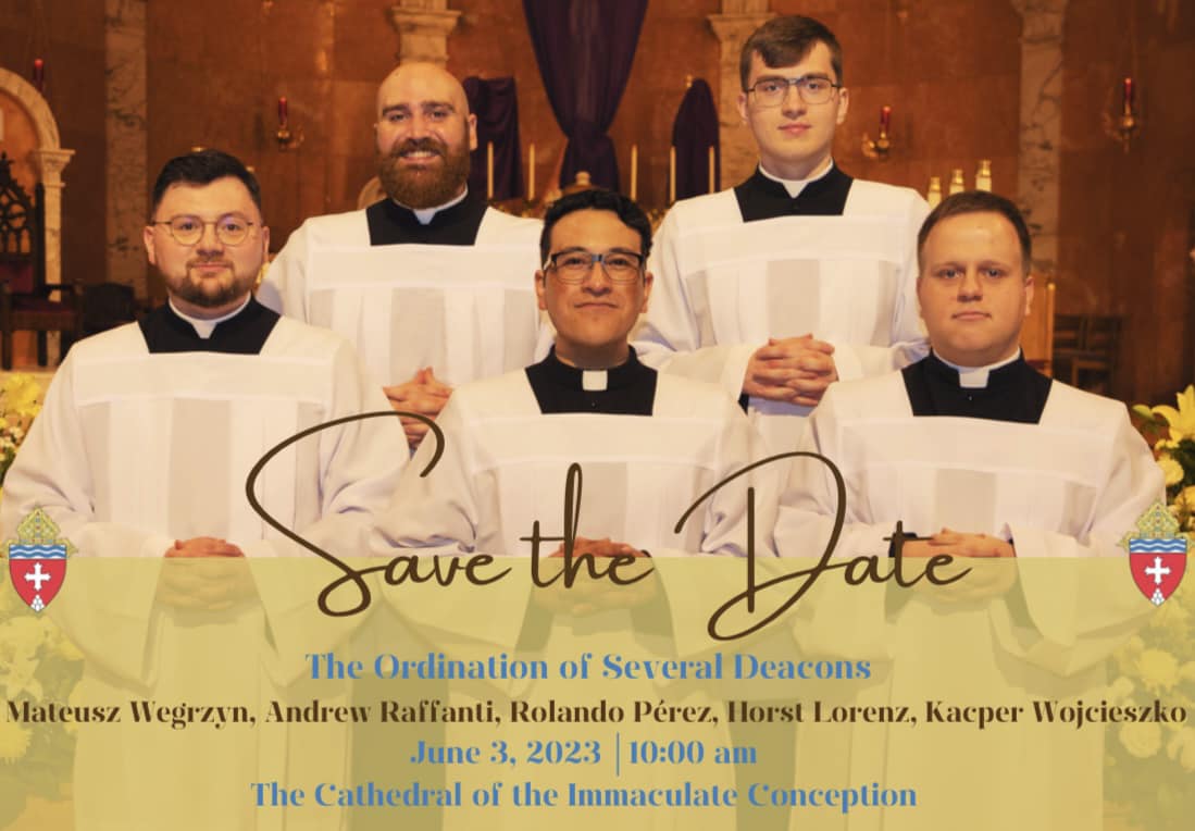 The Ordination of Several Deacons: June 3, 10:00 am, The Cathedral of the Immaculate Conception