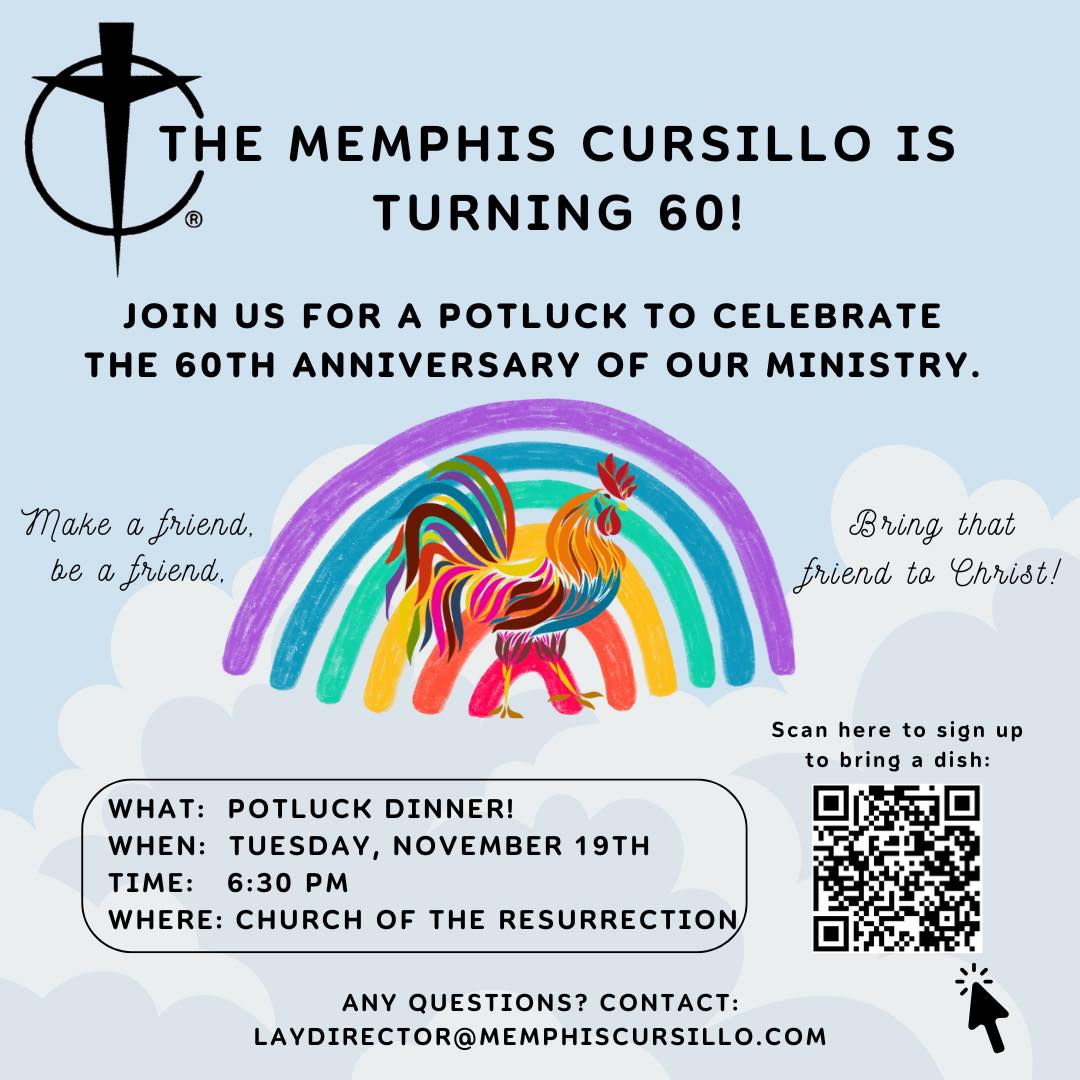 All are invited to the 60th Anniversary of the “Cursillo of Memphis” movement. The celebration will take a place on Tuesday, November 19, 6:30pm, at our beautiful Catholic Church of the Resurrection, 5475 Newberry Ave., Memphis.The speakers will be: Claire Barnett, Margaret Ann Murphy, and Caroline Barnett. They will speak on how their parents helped …