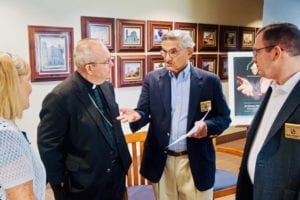 Frank P. Lamanna Sr. Scholarship Chairman and Mike Richert Grand Knight of Germantown Council 7449 present checks totaling $11,394 to Bishop David Talley and Janet Donato Superintendant of Memphis Catholic Schools. These checks were presented in honor of Jim Arnold a deceased Brother Knight of the Council who was instrumental in the raising of these funds over the years.