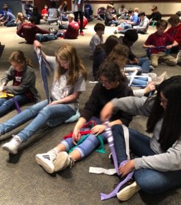 March 29, 2019 – This year, 6th grade students at SFA have made by hand over 200 dog toys for area shelters and rescue groups. The dog toys are made from donated t-shirts that the students braid into chew toys for dogs of all sizes. The dog toys are being sent to the Bartlett Animal Shelter, Blue City Rescue, Big Fluffy Dog Rescue and several others. SFA’s patron, Saint Francis of Assisi would be proud of the work our 6th graders are doing.