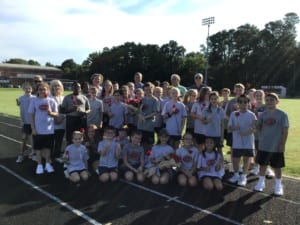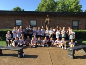 August 16, 2019 – Fifth grade students at St. Francis of Assisi Catholic School ran in the Silver Rose Run sponsored by the Knights of Columbus Timothy J. Coyle Council 9317 today. The actual Silver Rose passed through Memphis over the summer. The Knights wanted to continue the tradition at SFA and made a few changes to the program. This year, every 5th grade student received a red rose to carry during the run. Knight of Columbus member, Mr. Tom Griesmer explained that the rose symbolizes the value of human life in all its stages. He talked with the students about the story of Juan Diego and the Feast of Our Lady of Guadalupe. Following the run, the students placed their roses at the statue of Mary located at the center of campus.
