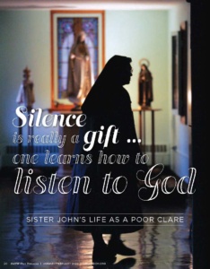 Walk with us as Karen Focht, photojournalist, takes us into their everyday personal lives in a special edition of Faith West TN dedicated to the Poor Clare’s. This is an issue you will want to have as we remember their legacy.