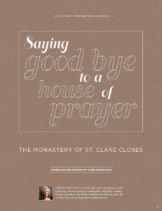 This issue is special to us, and we waited to release it until their departure. It offers the most comprehensive photographic documentation of the apostolic work and prayer life of the ones behind the tall brick walls of the Monastery of St. Clare yet published.
