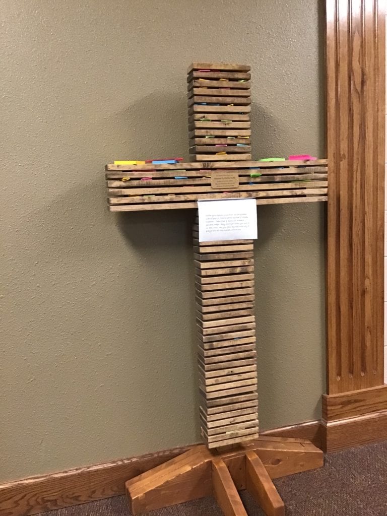 The idea behind the cross is simple – you write your special intention on a Post-It note. Next, say a prayer when you place your note on the cross. All of the prayer intentions will be lifted up by everyone who passes by the Prayer Cross. This inspirational gift was given to SFA by Mrs. Debbie Hobbs, grandmother of SFA students – Asher, Sara, Jacob, and Noah Fullen. Father Carl Hood blessed the Prayer Cross at the closing Mass for Catholic Schools Week. The SFA Prayer Cross is located by the school Chapel.