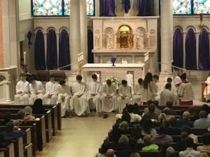 At St. Louis Catholic Church a new tradition began this year of washing the feet of 8th grade students who will receive the Sacrament of Confirmation in next few weeks.  To see more pictures from Holy Week events around the Diocese, you can click here.