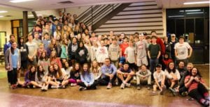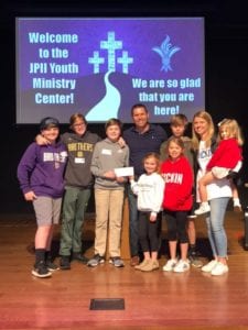 The junior high youth of St. Louis Youth Ministry recently attended the ministries’ 20th annual Lock-Out. This overnight event included a scavenger hunt, which took youth all across the Mid-South, and early morning adventures at Golf and Games. More than 100 youth participated in this year’s event which included help from more than 60 volunteer advisors and parent volunteers. During the three hour scavenger hunt, youth collected donations for Kids Kickin’ Cancer Soccer Club which was started as a family passion project in 2017 by Michelle and Chris Clothier. KKC Soccer Club provides a backpack and uniform kit to any child battling childhood cancer at no cost to the child’s family. Our youth ministry is blessed to be able to support this amazing charity. This year’s scavenger hunt raised $1,058.27 for Kids Kickin’ Cancer. Pictured are members of this year’s winning scavenger hunt team, Ayden Coon, J.T. Stovall and Harrison Kane, presenting a check to KKC founders Michelle and Chris Clothier and family.