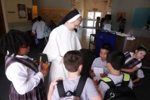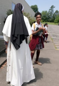 Sister Mary Lawrence dismisses students at St. Paul Catholic School in Whitehaven is not a jubilee school and will be one Catholic School in Memphis that will remain open. © Karen Pulfer Focht