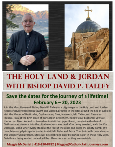 Mass will be celebrated daily by Bishop Talley in these Holy Sites. Details are being worked on and will be offered as soon as they are available.