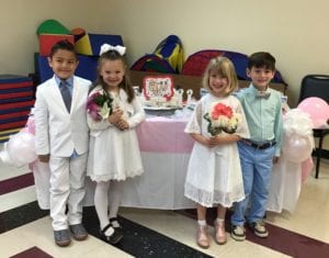 The ceremony included two brides and two grooms and was officiated by Mr. Don Thompson.  A reception for the happy alphabet couple followed with wedding cake and juice boxes.