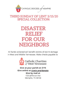 THIRD SUNDAY OF LENT 3/15/20 SPECIAL COLLECTION: DISASTER RELIEF FOR OUR NEIGHBORS